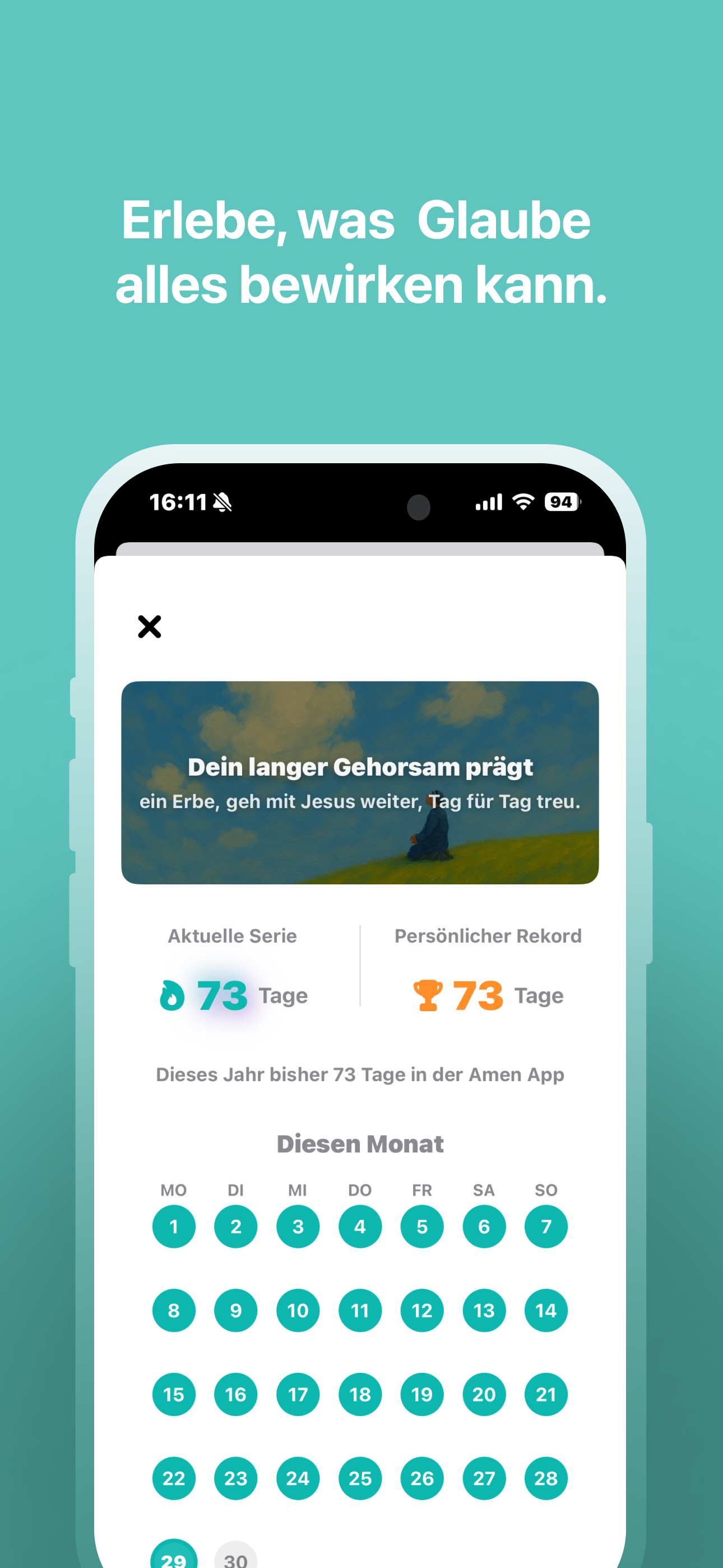 Motivation durch Routine: Entwickle beständige spirituelle Gewohnheiten und verfolge deinen Fortschritt mit unserer Streak Funktion.