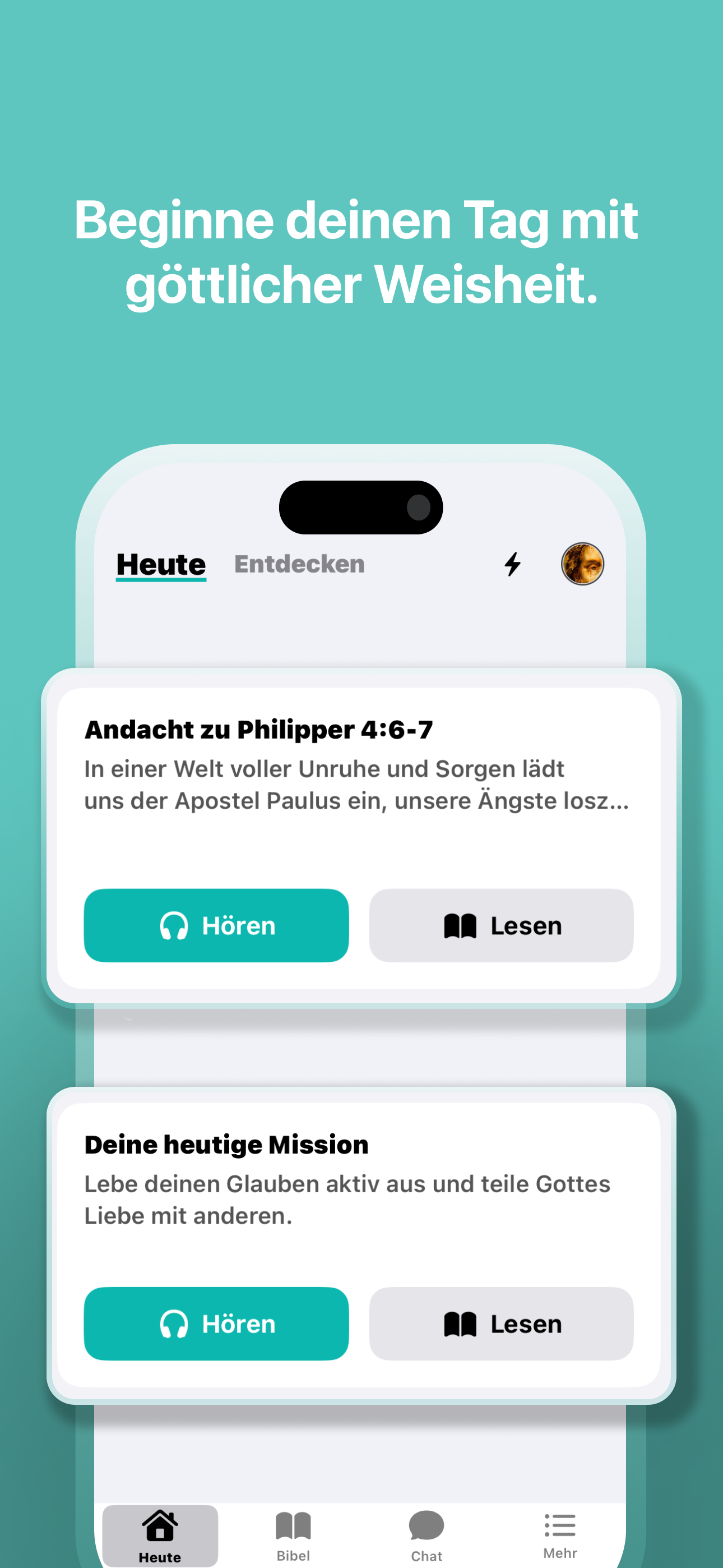 Tägliche Inspiration: Beginne jeden Tag mit Sinn durch personalisierte Andachten, Bibelstellen und aufbauende Gedanken.